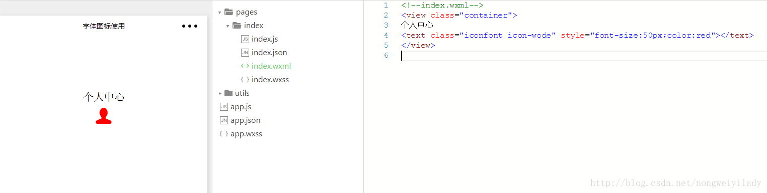 3–在index.wxml中使用字體圖標。代碼如下: